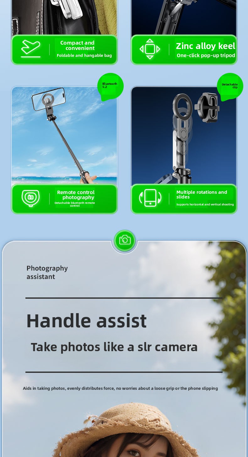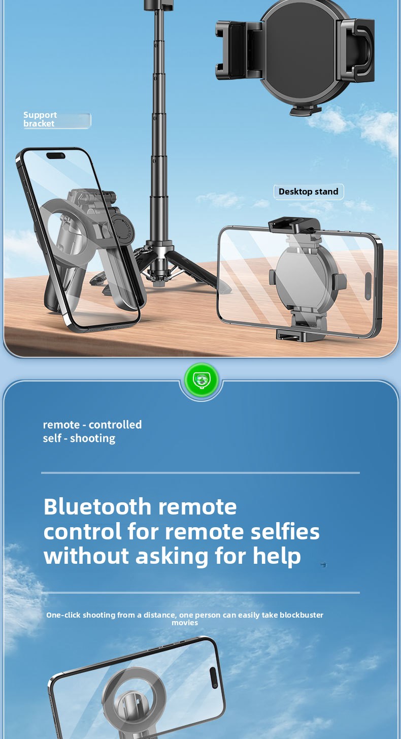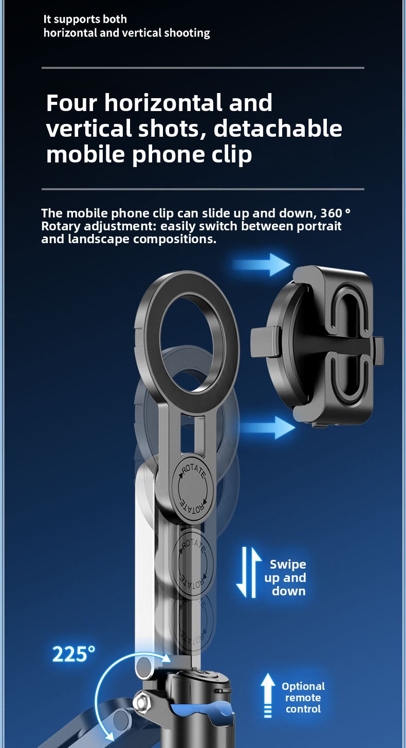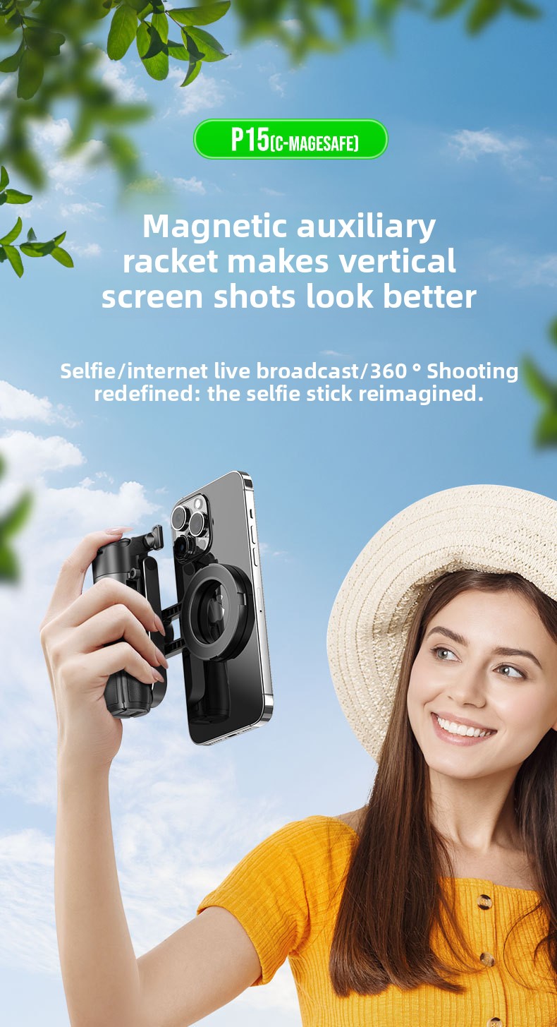 P15 Magnetic Selfie Stick with Bluetooth Remote and Fill Light Options