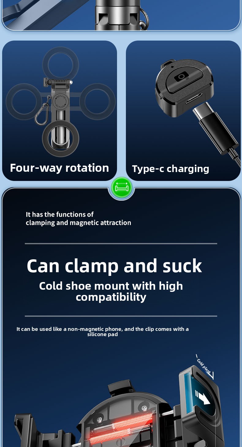 Magnetic Attachment: Strong magnetic base for secure phone placement.